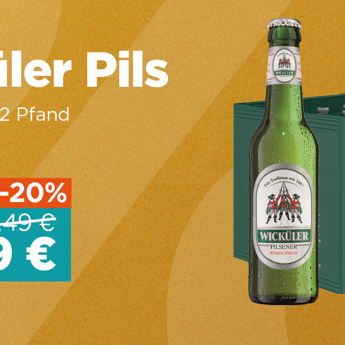 Preis: 12,49 €Angebotspreis: 9,99 €zzgl. 3,42 € PfandGrundpreis: 1,26 €pro lUnser Wicküler Pilsener wird bereits seit 1887 in Deutschland gebraut und kann auf eine lange Tradition zurückblicken. Selbstverständlich brauen wi...